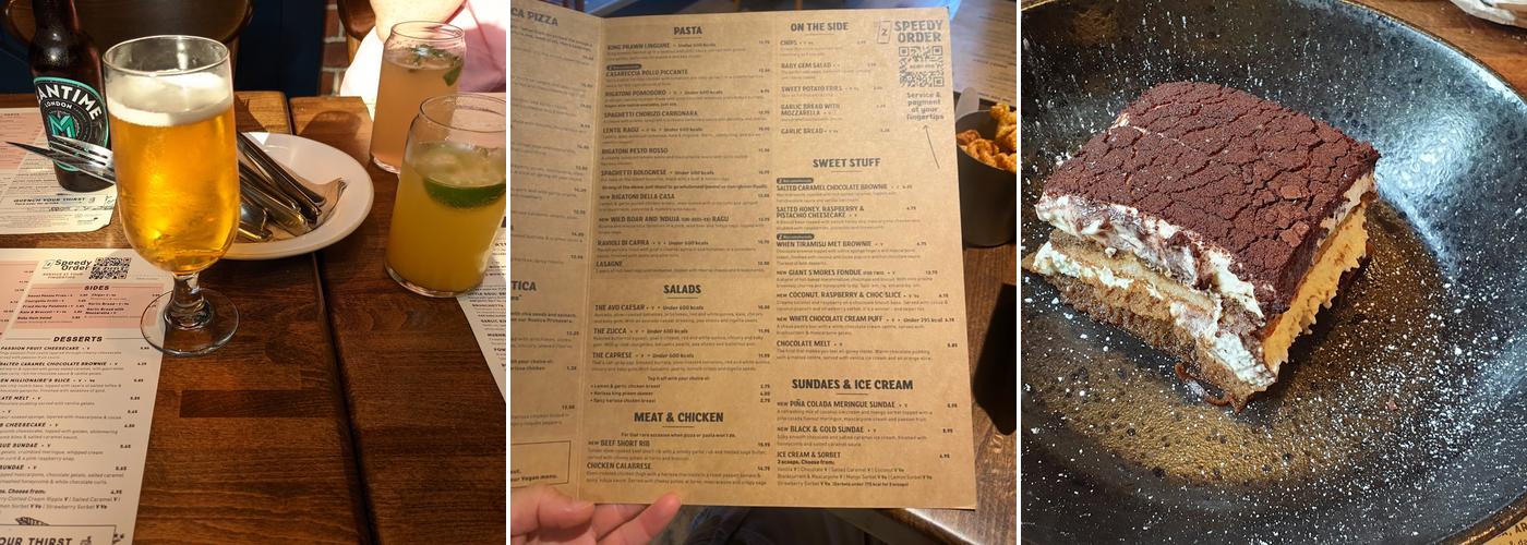 Zizzi is a pizza restaurant that serves large groups well. Their flatbread-style pizzas have a crunchy crust and fresh toppings. The restaurant caters to those with dietary restrictions, with knowledgeable staff who can guide you through gluten-free options. Reviewers praise the friendly and accommodating service, noting servers' expertise on the menu and local area. Zizzi offers a variety of desserts, though guests often leave too full to try them.