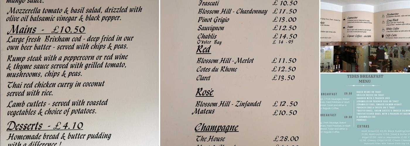 Tides, a charming cafe located in Brixham, offers a delightful dining experience. The friendly staff and great breakfast menu, including a highly recommended full English breakfast, make it a local favourite. Customers can enjoy their meals with a view of the picturesque harbor, perfect for people-watching. The cafe also serves an exceptional cream tea, featuring warm, fluffy scones that have been praised as the best. With its reasonable prices and welcoming atmosphere, Tides is a must-visit destination for both locals and visitors alike, providing a satisfying and memorable dining experience.