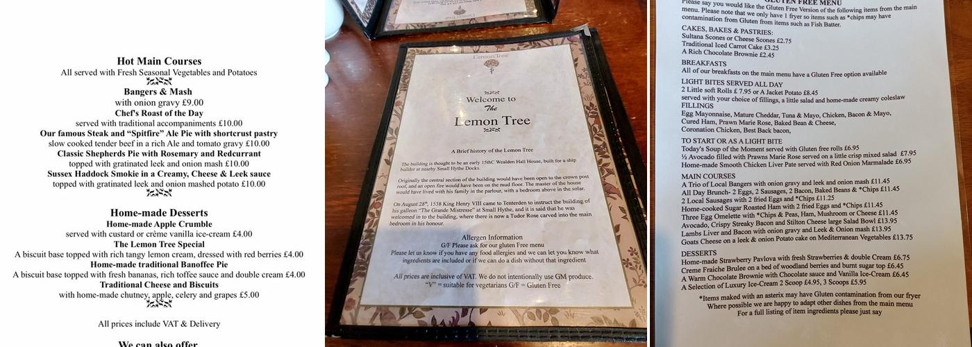 The Lemon Tree is a cosy restaurant with a rustic atmosphere and friendly staff, making visitors feel at home. While some reviews mention issues like overly hot food and dry sausage, others praise the generous portions of starters like soup of the day and chicken liver paté. The Sunday roast and liver and bacon are highlighted as fantastic meals, with the homemade banoffee pie receiving special mention. Overall, The Lemon Tree has a welcoming vibe and reasonable prices, attracting guests who plan to return.