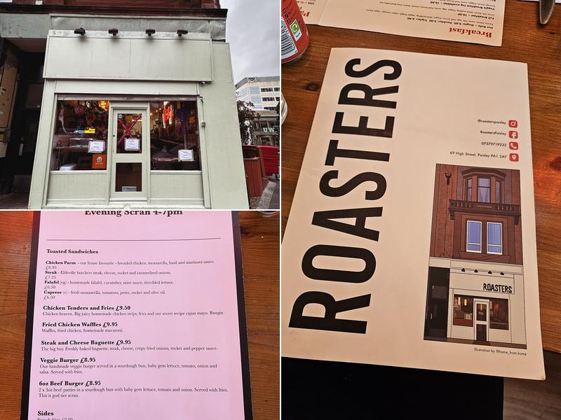 Roasters is a brilliant little place with a big atmosphere and a great menu. The food is top-notch, with every dish sounding and looking amazing. The restaurant is always bustling, with full tables, empty plates, and a queue at the door waiting for the next available seat - a testament to the quality of the wholesome, tasty food. While prices may have increased slightly, and some dishes have seen changes in quantity or ingredients, the overall experience at Roasters is excellent. The staff are wonderful, the atmosphere is lovely, and the food is truly amazing, making it a go-to breakfast spot for many. Customers highly recommend this place and plan to return to try more of the delicious offerings.