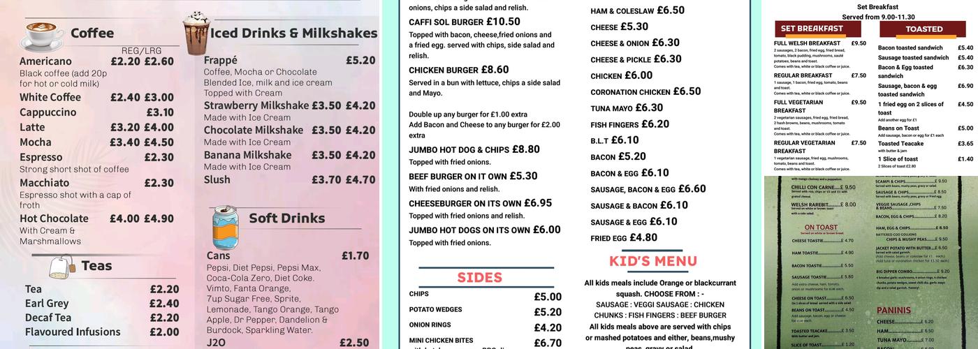 Caffi Sol is a family-friendly cafe that offers an exceptional breakfast experience. The full Welsh breakfast, priced at £9.50 including a beverage, is a real feast that will keep you going all day. The food is well-cooked and yummy, with the cafe offering the flexibility to swap items on the breakfast menu. The service is quick and friendly, and the staff are accommodating. While the sausages may not be the highest quality, the overall dining experience is highly recommended, with the cafe deserving its high star rating. The exterior seating area is dog-friendly, and there is ample paid parking nearby, making it a convenient stop for both locals and visitors.